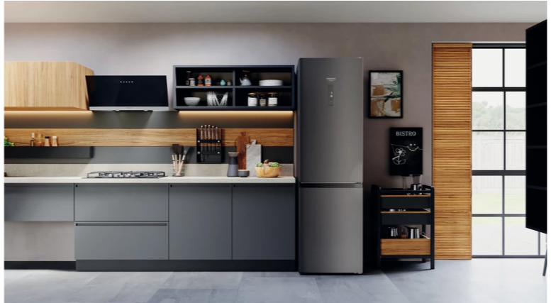 Este combinado de livre instalação Hotpoint tem: Tecnologia Total No Frost, que reduz a humidade dentro do congelador, prevenindo a acumulação de gelo. Prateleiras em vidro, proporcionando robustez. Porta-garrafas útil, para armazenar com segurança as suas garrafas.