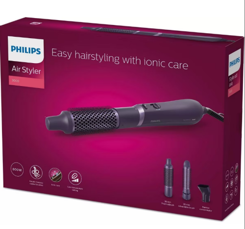 Seca e modela numa só passagem - o Modelador Philips Air Styler 3000 permite-lhe criar penteados bonitos, atraentes e de aspecto natural, ao mesmo tempo que proporciona um melhor cuidado e mais brilho.