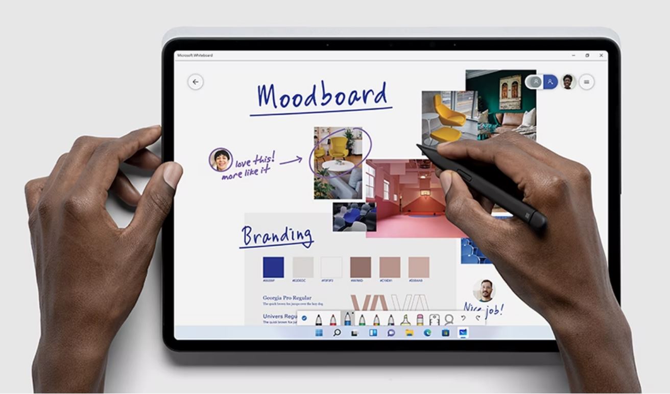 Faça um brainstorm e esboce com outras pessoas no Microsoft TeamsNota de rodapé2 ou ao usar o Microsoft Whiteboard. Além disso, edite apresentações no local, preencha e assine documentos ou faça anotações pessoais manuscritas no Microsoft Journal.Nota de rodapé