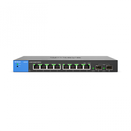 Linksys LGS310C. Tipo de switch: Gerido, Camada de switches: L3. Tipos de portas ethernet Basic switching RJ-45: Gigabit Ethernet (10 100 1000), Número de portas ethernet Basic switching RJ-45: 8. Tabela de endereços MAC: 8000 entradas, Capacidade de routing switching: 20 Gbit s. Normas de Comunicações: IEEE 802.1D, IEEE 802.1Q, IEEE 802.1s, IEEE 802.1w, IEEE 802.3ad. Voltagem de entrada DC: 12 V
