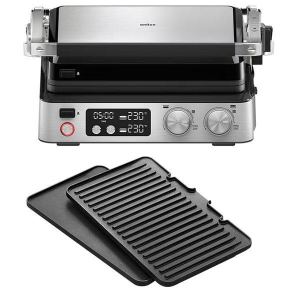 5 funções de cozedura: grelhador de contacto & sanduíche, grelhador aberto a 180º, função placa lisa, função placa ondulada e forno.