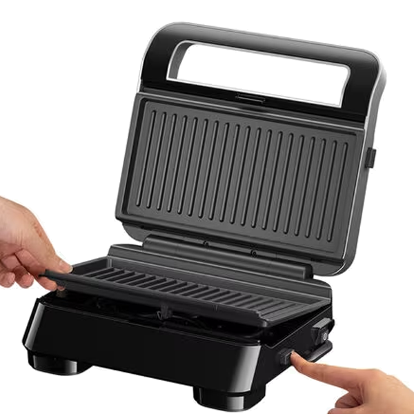 - Superfície de aquecimento que distribui o calor uniformemente, garantindo que os sanduíches sejam cozidos de maneira homogênea.