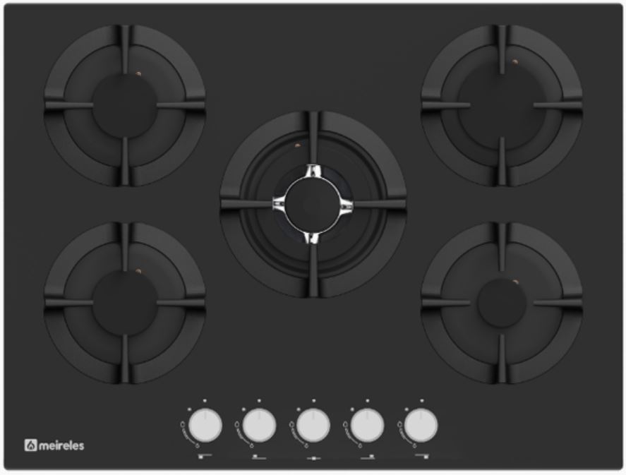 PLACA ENCASTRE MESA MEIRELES MVG4752N CRISTAL GAS 5 ZONAS WOK 70Cm