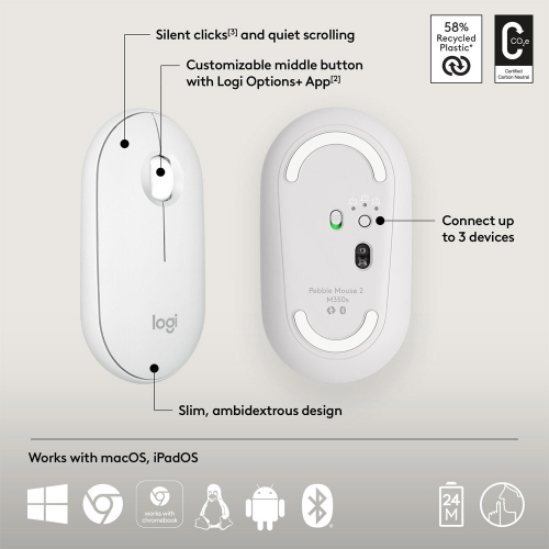 Documento de informação importante (IID) > ratos2390NovoProduto disponívelRato Óptico Logitech Pebble 2 M350s TONAL BRANCO