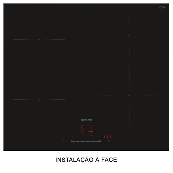SIEMENSPLACA SIEMENS de indução 60 cm Preto Instalação à face EH601HEB1EPLACA SIEMENS de indução 60 cm Preto Instalação à face EH601HEB1EIQ100, Placa Indução (7.400 W), 60 cm, nivelado à face, 4 zonas, touchSlider+, HC/cookConnect, botão favoritos (várias funções extra programáveis através da app), powerBoost, programação do tempo, reStart, quickStart > indução50790NovoProduto Limitado