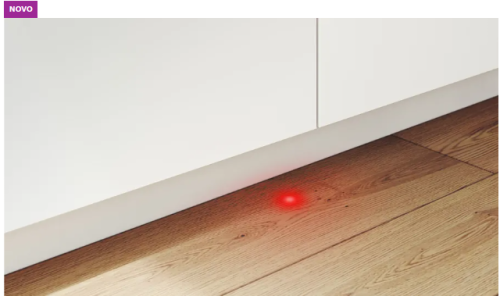 O InfoLight consiste numa projeção de luz LED vermelha no chão da sua cozinha que informa se a sua máquina de lavar loiça totalmente integrada ainda está a funcionar.