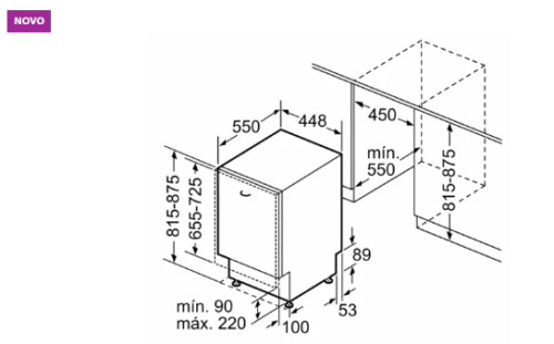 Dimensões de instalação necessárias (A x L x P): 0,815-875 x 450 x