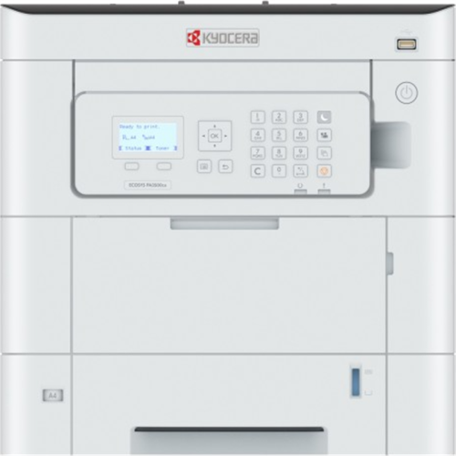 KYOCERA ECOSYS PA3500cx. Tecnologia de impressão: Laser, Cor. Número de tinteiros: 4, Ciclo de funcionamento máximo: 100000 páginas por mês. Resolução Máxima: 1200 x 1200 DPI. Dimensão máxima de papel ISO A-series: A4. Velocidade de impressão (preto, qualidade normal, A4 US Letter): 35 ppm, Impressão Duplex.