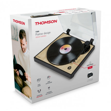 GIRA-DISCOS THOMSON 33/45RPM.2V.-TT300 Preto, Base de madeira