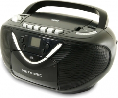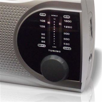 Rádio AM FM; Ligação à corrente elétrica; Ligação a pilhas - 4 x pilhas "C"; Antena telescópica;