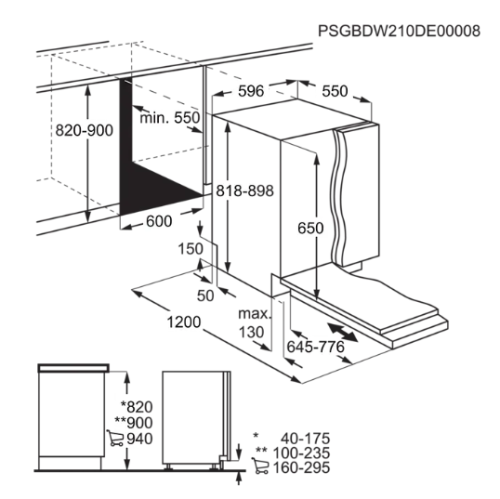 MAQUIN A LAVAR LOIÇA ENCASTRE AEG 5P 3T TI INVERTE FSB34707Z 14 TALHERES ALTURA 82Cm LARGURA 60Cm PROFUNDIDADE 55Cm