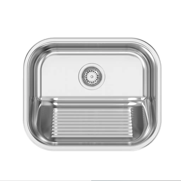 Medida externa: 550x450mm Medida cuba: 500x400mm Profundidade: 230mm Móvel: 600mm Acabamento: Polido Aplicação: Encastrar Inclui: Sifão válvula manual de cesta