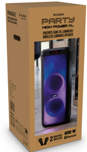 BIGBENCOLUNA BIGBEN 600W.BLUETO PARTYBTHPXLCOLUNA BIGBEN 600W.BLUETO PARTYBTHPXLCOLUNA BIGBEN 600W.BLUETO PARTYBTHPXL 600 Watts de potência musical para uma noite que vai arrasar com o alto-falante Bluetooth PARTYBTHPXL. Efeitos de luz espetaculares e evolutivos, cada um mais visual que o outro, misturados com os dois microfones incluídos garantirão a festa perfeita. > colunas portáteis14890NovoProduto disponível