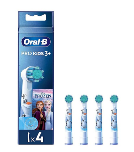 RECARGA ORAL-B STAGES FROZEN - 4 Unidades. As cabeças de escova extras para Oral-B Kids 3+ oferecem às crianças o entretenimento de Disney Frozen com a limpeza suave da escova dental Oral-B recomendada. As cerdas extra macias e a pequena cabeça redonda são especialmente desenvolvidas para crianças e combinam com todas as escovas de dente elétricas Oral-B Kids.