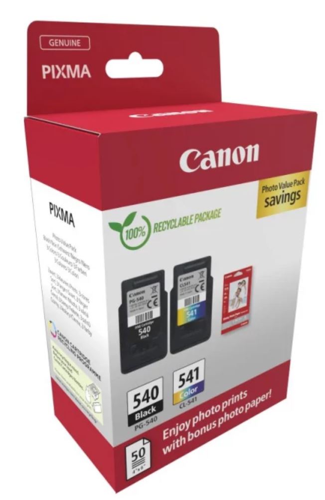 TINTEIRO CANON PG-540/CL-541 4x6 Papel fotográfico (GP-501 50 folhas) + cartuchos pretos e coloridos, 5225B013