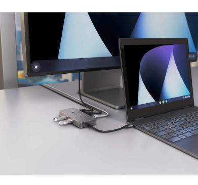Concebido para o nómada digital ou para o estudante diligente, o hub USB-C de 5 portas é o primeiro hub USB-C do mundo com certificação Works With Chromebook com actualizações automáticas de firmware OTA que permite ligar uma porta USB-C ao seu monitor, periféricos e dispositivos de armazenamento.