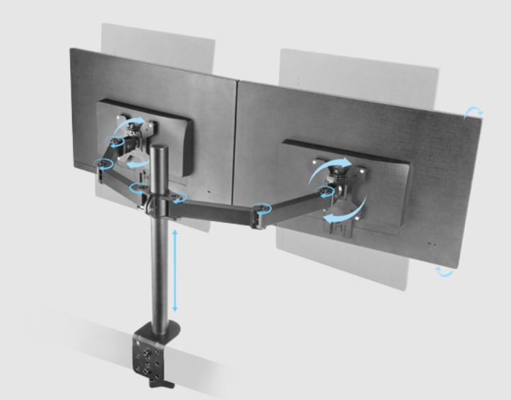 O MARM2 é um suporte de monitor duplo de alta qualidade, projetado para telas de 13" a 27" e capaz de suportar até 8 kg de peso por braço. Este suporte robusto e resistente possui braços totalmente articulados, gerenciamento de cabos e altura do monitor ajustável. O MARM2 não é apenas um suporte de monitor, é uma solução para melhorar seu bem-estar e produtividade. Os seus braços totalmente articulados permitem ajustar a posição dos seus monitores com precisão e facilidade. Imagine poder inclinar, girar e girar cada tela para adaptá-la ao ângulo de visão que melhor lhe convier, ajudando a prevenir a fadiga visual e a dor corporal. O suporte MARM2 vai além dos suportes de monitor convencionais. Os seus dois braços totalmente articulados permitem ajustar cada monitor individualmente para obter o ângulo e a altura perfeitos. Reduz a fadiga visual e o estresse no pescoço, ombros e costas, melhorando assim tanto sua produtividade quanto seu bem-estar. O MARM2 é construído em aço de alta qualidade, oferecendo uma estrutura robusta e resistente que garante uma estabilidade excepcional. Não terá que se preocupar com movimentos indesejados ou vibrações desconfortáveis enquanto trabalha. Este suporte fornece uma base sólida e segura para as telas, proporcionando tranquilidade e confiança em seu desempenho. O MARM2 não só suporta os monitores, também cuida do espaço de trabalho. O seu sistema de gerenciamento de cabos integrado mantém os cabos organizados, evitando emaranhados e desordem na mesa. Além disso, a sua capacidade de elevação ajustável e suporte de até dois monitores permite liberar e aproveitar ao máximo o seu espaço de trabalho. O MARM2 é totalmente compatível com os padrões VESA75 e VESA100, o que garante uma instalação e configuração fáceis. Só precisará de alguns minutos para montar e garantir os seus monitores nos braços do suporte. Com seu design intuitivo, poderá começar a desfrutar dos benefícios de uma configuração de monitor duplo rapidamente e sem complicações.