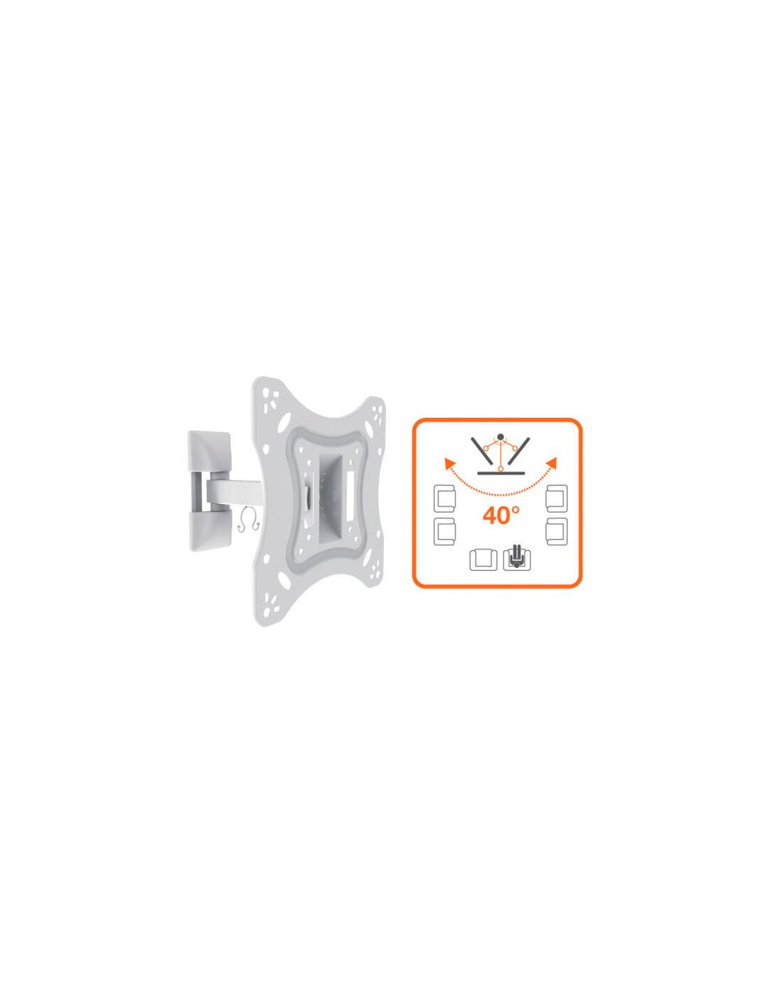 Peso máximo (capacidade): 20 kg, Tamanho mínimo de ecrã: 71,1 cm (28"), Tamanho máximo de ecrã: 106,7 cm (42"), Suporte VESA mínimo: 75 x 75 mm, Montagem VESA máxima: 200 x 200 mm. Ângulo de inclinação: -20 - 20°, Orientação: -40 - 40°, Distância à parede (mín): 8 cm, Distância à parede (máx): 19,5 cm. Cor do produto: Branco