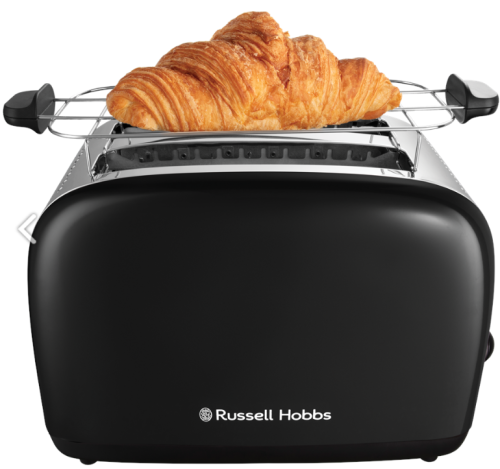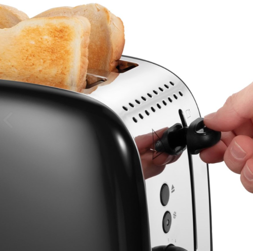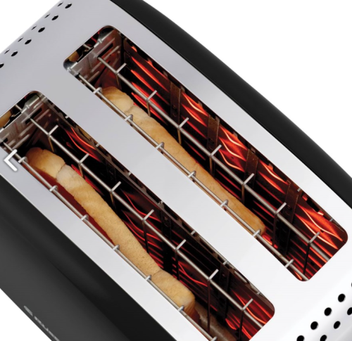 Torradeira, 2 fatias, 2 suportes, slots mais longos, Lift and Look, recurso High lift, 6 configurações de tostagem, funções Frozen, reaquecer e cancelar, Bandeja de migalhas, Aquecedor de pão, preto Aproveite a torrada que você adora todos os dias com as cores pretas Russell Hobbs Mais torradeira 2S.
