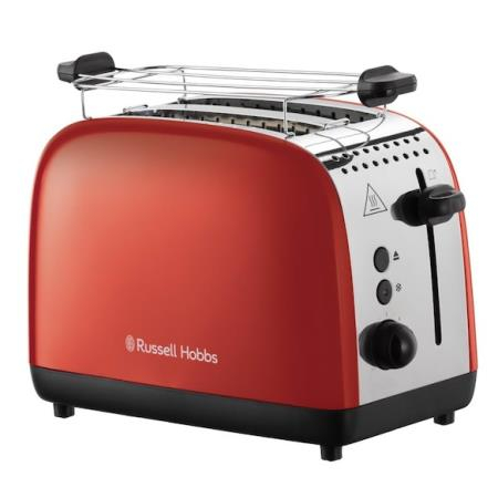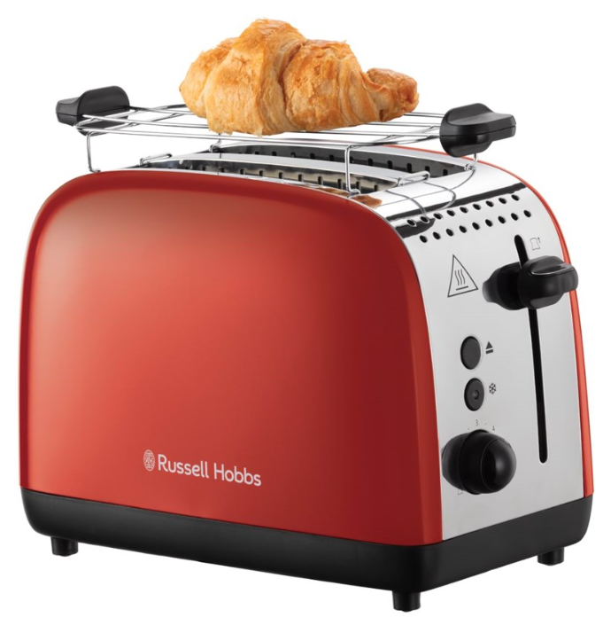 Torradeira, 2 fatias, 2 suportes, slots mais longos, Lift and Look, recurso High lift, 6 configurações de tostagem, funções Frozen, reaquecer e cancelar, Bandeja de migalhas, Aquecedor de pão, vermelho Aproveite a torrada que você adora todos os dias com as cores pretas Russell Hobbs Mais torradeira 2S.