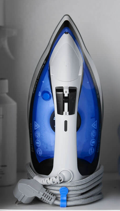 Armazenamento limpo e fácil: Quando não está a ser usado, o cabo fica bem enrolado à volta da base do ferro e pode ser fixado de forma segura para evitar que fique solto, tornando o seu ferro um pouco mais fácil de guardar.