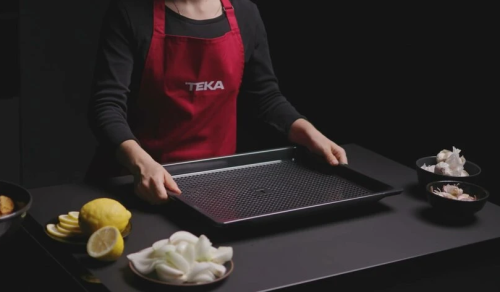 O Forno Teka AirFry tem uma bandeja especialmente perfurada, que permite uma perfeita circulação de ar, para que os alimentos cozinhem de maneira uniforme e sem necessidade de virar.