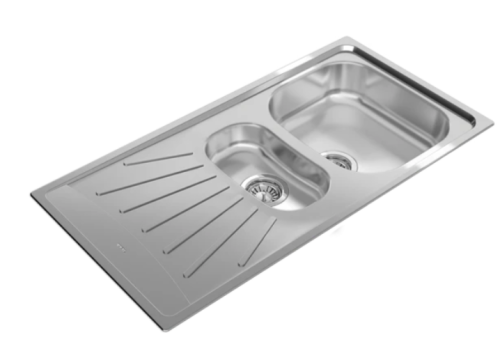 Basta inserir por cima em um recorte preparado e a borda da pia assentará na superfície de trabalho. Os lava-louças Teka podem ser montados em praticamente qualquer bancada. A pia é fixada na bancada por baixo, sem parafusos ou porcas à mostra.