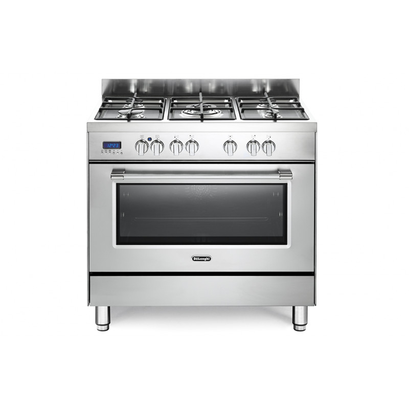 De’Longhi PRO 96 MX ED. Tipo de produto: Fogão independente, Cor do produto: Aço inoxidável, Tipo de controlo: Rotativo. Tipo de boca: Gás, Número de zonas de cozedura: 5 zona(s), Número de zonas de cozedura de gás: 5 zona(s). Tamanho do forno: Grande, Fonte de energia do forno: Eléctrico, Capacidade líquida do forno: 87 l. Classe de eficiência energética: A, Consumo energético (convencional): 1,09 kWh, Escala de eficiência energética: A+++ a D. Largura: 900 mm, Profundidade: 600 mm, Altura: 860 mm > mistos138090NovoProduto Limitado€ 1380.90