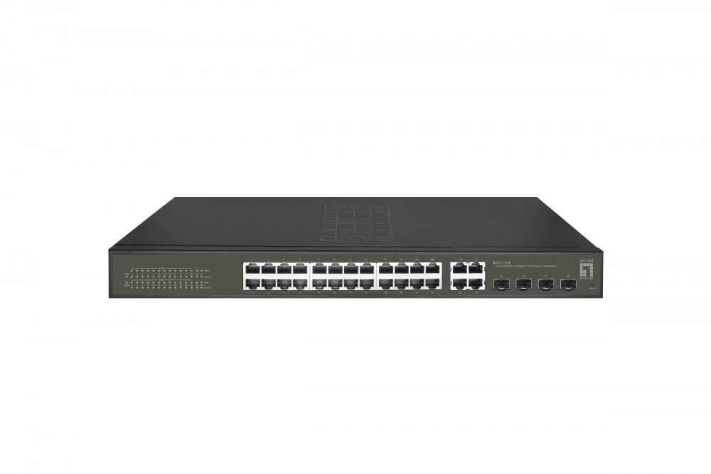 LevelOne GES-2128P. Tipo de switch: Gerido, Camada de switches: L2. Tipos de portas ethernet Basic switching RJ-45: Gigabit Ethernet (10 100 1000), Número de portas ethernet Basic switching RJ-45: 24. Full duplex. Tabela de endereços MAC: 8000 entradas, Capacidade de routing switching: 56 Gbit s. Normas de Comunicações: IEEE 802.1Q, IEEE 802.1p, IEEE 802.3, IEEE 802.3ab, IEEE 802.3af, IEEE 802.3at, IEEE 802.3az, IEEE.... Power over Ethernet (PoE). Montagem em prateleira