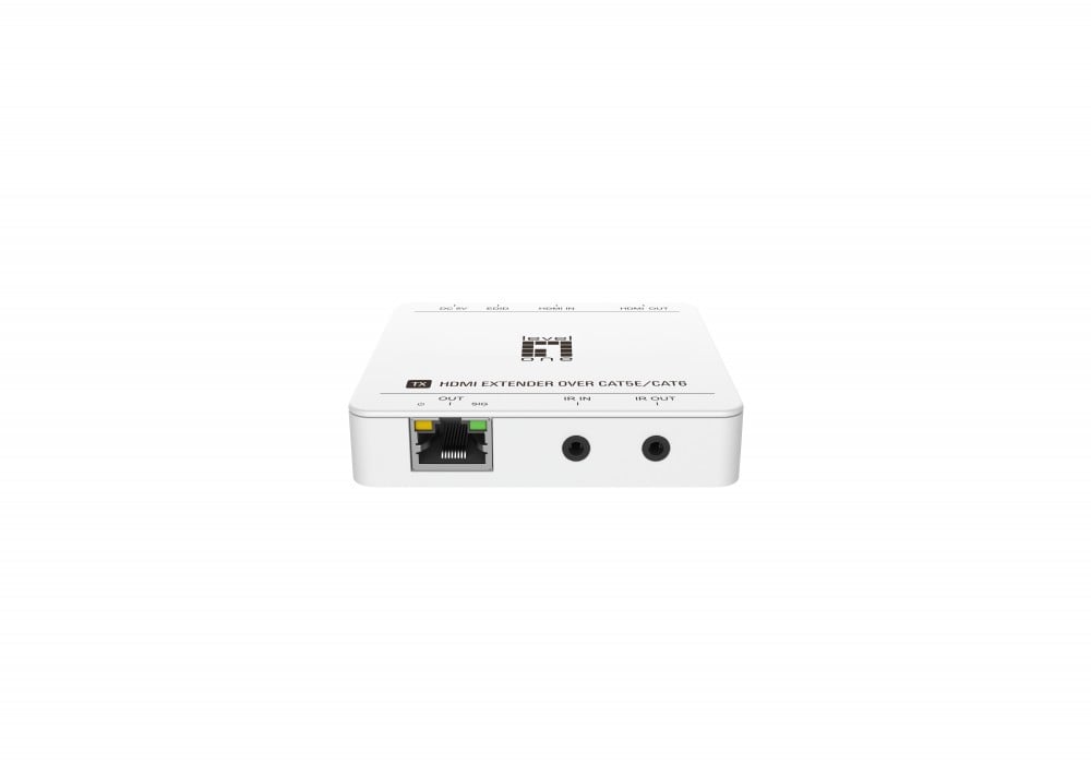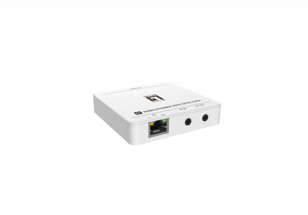 LevelOne HVE-9007. Tipo: Transmissor e recetor AV, Resolução Máxima: 3840 x 2160 pixels, Tipos de cabos suportados: Cat5e, Cat6. Tecnologia de conetividade: Com fios, Tipo de conetor USB: Micro-USB. Largura: 16,8 mm, Profundidade: 66 mm, Altura: 66 mm. Quantidade por conjunto: 1 unidade(s), Comprimento da embalagem: 143 mm, Profundidade da embalagem: 74 mm