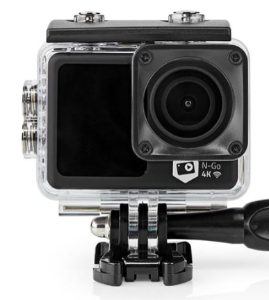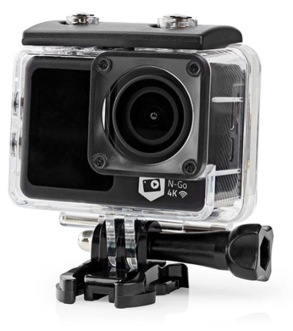 Esta câmara de ação de tela dupla captura vídeo em 4K nítido com resolução de 30 fps, com o qual pode capturar atividades ao ar livre e momentos de ação em detalhes e fotos com resolução de até 16 MP num cartão microSD (não incluído). O design de tela dupla possui uma tela frontal colorida adicional de 1.3" que permite tirar selfies ou fazer vlogging. Mostrando a visualização ao vivo à frente da câmara. A tela sensível ao toque de 2" na parte traseira é nítida e vívida, tornando a configuração, visualização e gravação mais fáceis que nunca. A câmara de ação é à prova de água até 30 m quando usada com a caixa à prova d’água incluída. Esta câmara de ação possui Wi-Fi e permite compartilhar a emoção com os seus amigos nas redes sociais através do uso da aplicação N-Go 4K, que está disponível gratuitamente para download em Android e iOS. Com a bateria integrada de 900 mAh pode gravar até 90 minutos com uma única carga. A saída HDMI possibilita assistir ás gravações num ecrã externo como a sua TV.