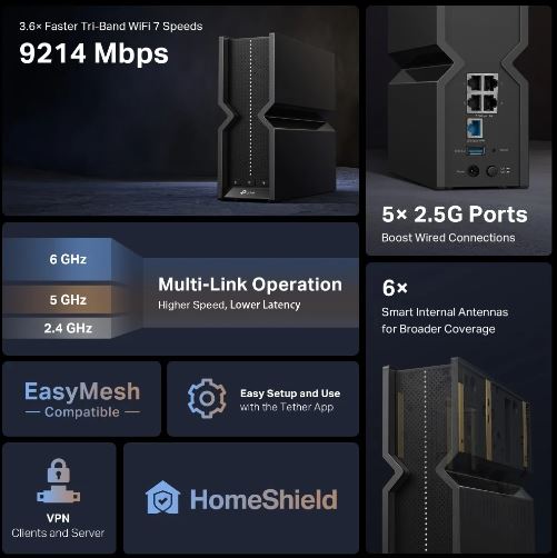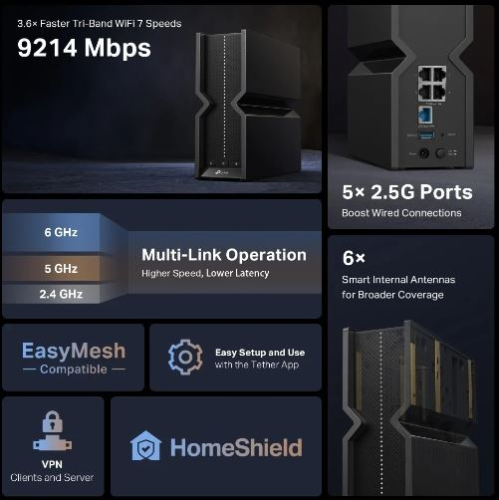 Router TP-Link Archer BE550 BE9300 Tri-Band Wi-Fi 7