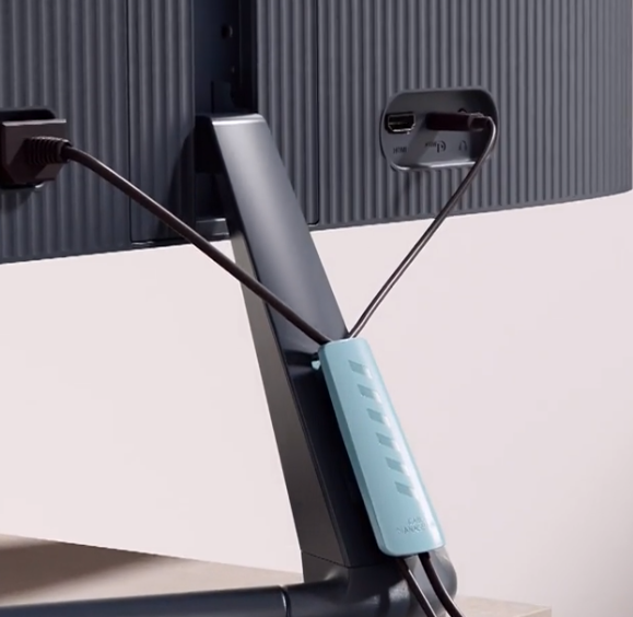 Design de altura ajustável por parafuso e clipe de gerenciamento de cabos