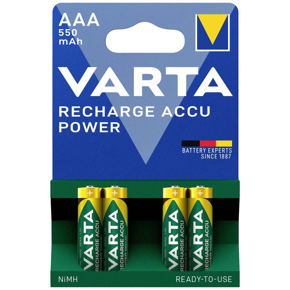 Pilhas 1x4 Varta RECHARGE Bateria Power 550 mAH AAA Micro NiMH
