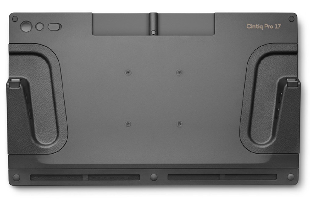 Na mesa extensora Wacom Cintiq Pro *** você pode colocar seu teclado, telefone ou um caderno de desenho e conectar câmeras, microfones e luzes LED às roscas fotográficas UNC de 1/4 de polegada integradas.