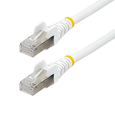 ESPECIFICAÇÕES: Cabo de rede categoria 6A; 7,5 m; Branco; 10 Gbps; 500 MHz; 4 pares S FTP; RJ45 sem nós com alívio de tensão; EVA, Al(OH)3; LSZH; 27 AWG; 100% cobre; Verificado por ETL; ANSI TIA-568.2-D; Suporta padrões Cat6 e anteriores; Com garantia vitalícia