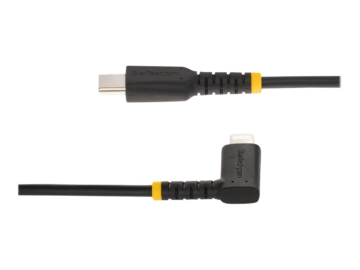 StarTech 6ft (2m) Durable USB-C to Lightning Cable, Right-Angled Heavy Duty USB Type-C to Lightning Charging Sync Cord - 6ft USB Type-C to right angle Lightning charging cable for convenient peripheral connection - MFi Certified - Durable USB 2.0 Type-C to C94 Lightning cord with strain reliefs capable of 5000 bend cycles at 180 degree - Fast iPhone charger