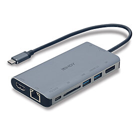 Interface: USB Tipo C para 1x HDMI® / 1x DP / 1x RJ45 / 2x USB Tipo A / 1x USB Tipo C / 1x SD / 1x Áudio (combo)
