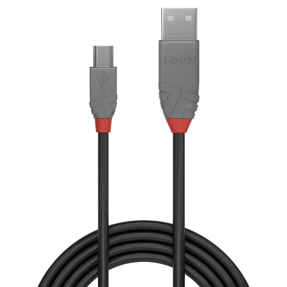 Cabo USB 2.0 Tipo A para Mini-B de 5m, Linha Anthra