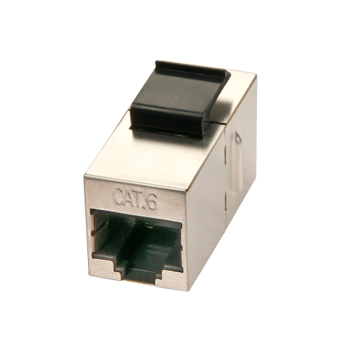 Formato Keystone RJ45 duplo Cat.6 para conexões Gigabit também para uso em painéis de conexão, conectores e tomadas de parede