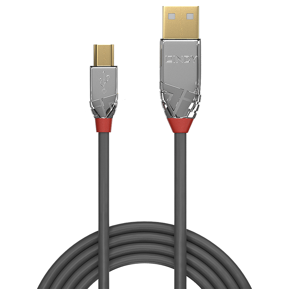 Os cabos Cromo Line USB 2.0 Tipo A para Mini-B do conceito Lindys Cable Lines são conexões de design de alto desempenho que combinam construção premium com arquitetura de conector impressionante.