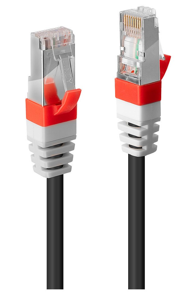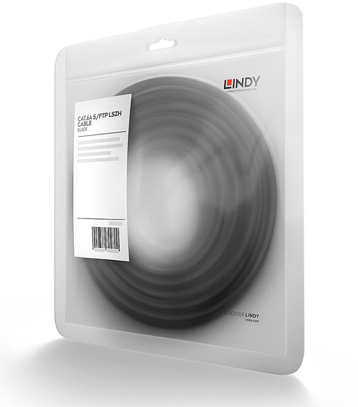 Cabo Cat.6A, blindado com malha trançada como blindagem geral e blindagem metálica para os pares de fios individuais (S FTP). Os cabos Cat.6A atendem aos requisitos de 10 Gigabit Ethernet (10GBaseT) com uma frequência operacional de até 500 MHz. Esses cabos são fabricados e testados de acordo com a especificação ISO IEC 11801. Os cabos são embalados individualmente em um saco plástico.