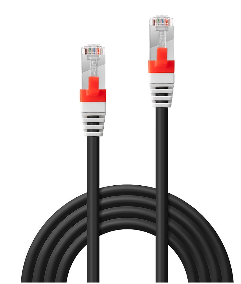 Cabo de rede S/FTP Cat.6A com suporte para largura de banda de até 500 MHz e apresenta um design sem enroscos com contatos banhados a ouro para padrões Ethernet de até 10 GBase-T.