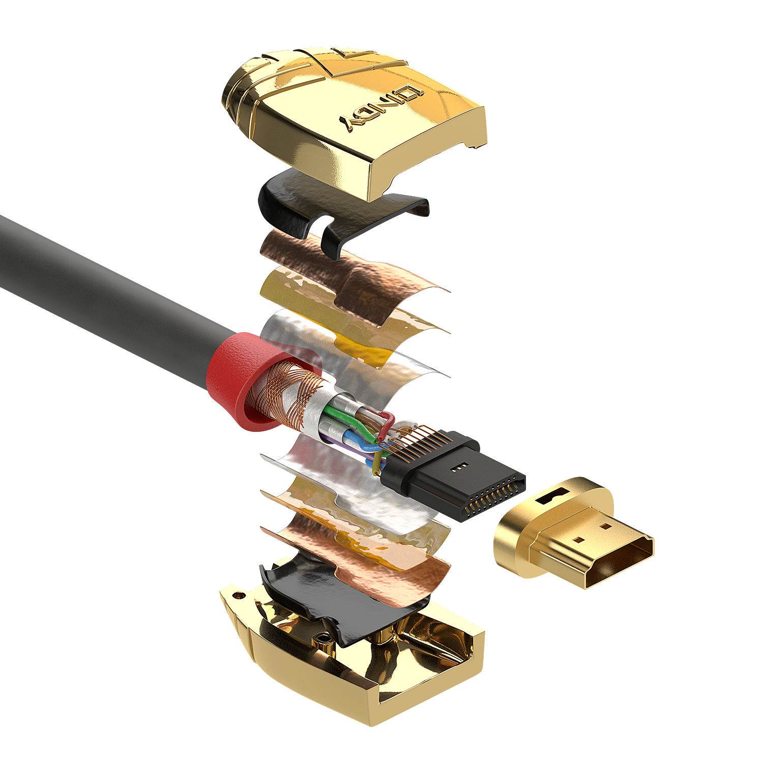 Para integridade completa do sinal, os cabos Gold Line HDMI apresentam contatos banhados a ouro 24K, blindagem tripla com envoltório mylar 100% alumínio e trança de cobre estanhado 85%.