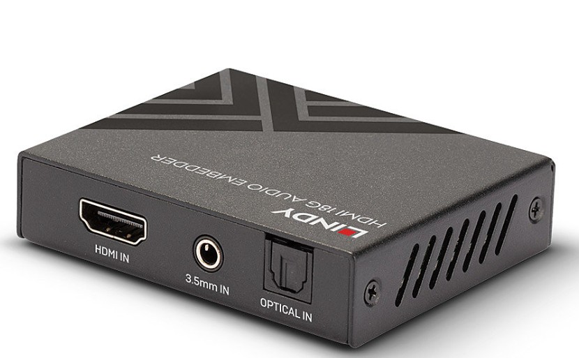 O Embedder de Áudio Lindy HDMI® 18G permite ao usuário incorporar perfeitamente áudio digital e analógico de um dispositivo TosLink (Óptico) ou de 3,5 mm e enviá-lo para o sinal HDMI® , além de enviar o sinal de vídeo para um monitor ou projetor 4K UHD. Esta é uma ótima solução para conectar entradas de áudio separadas para complementar o conteúdo de vídeo, como em bares esportivos ao reproduzir comentários alternativos sobre um evento ao vivo ou reproduzir música externa sobre publicidade digital em um ambiente de varejo.