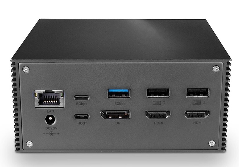 Conecta um DisplayPort e/ou até 2 monitores HDMI®, periféricos USB e alimenta o laptop por meio de um único cabo