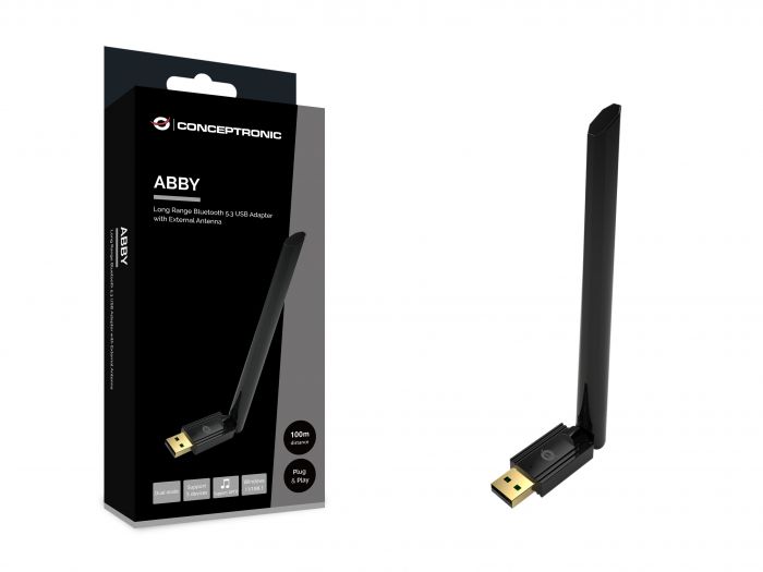 ConceptronicAdaptador USB Bluetooth 5.3 de longo alcance ABBY17B, antena externaAdaptador USB Bluetooth 5.3 de longo alcance ABBY17B, antena externaAdaptador USB Bluetooth 5.3 de longo alcance ABBY17B, antena externa Este adaptador USB Bluetooth 5.3 pode criar uma conexão sem fio com outros dispositivos Bluetooth, incluindo fones de ouvido, alto-falantes, teclado, mouse e dispositivos móveis. Bluetooth 5.3 + EDR (Enhanced Data Rate) reduz a perda de taxa de transmissão causada pela interferência da banda de 2,4 GHz e melhora a estabilidade e anti-interferência. O baixo consumo de energia e o formato compacto permitem que você o deixe conectado ao seu notebook. Perfeito para usuários móveis! Equipado com uma antena giratória extra longa de 4dBi para distâncias de transmissão mais longas, juntamente com tecnologia de rádio Classe 1. Este adaptador é capaz de transmitir distâncias de até 100m em locais abertos. > adaptadores / hubs2090NovoProduto disponível