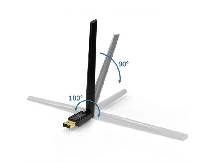 Equipado com uma antena giratória extra longa de 4dBi para distâncias de transmissão mais longas, juntamente com tecnologia de rádio Classe 1. Este adaptador é capaz de transmitir distâncias de até 100m em locais abertos.