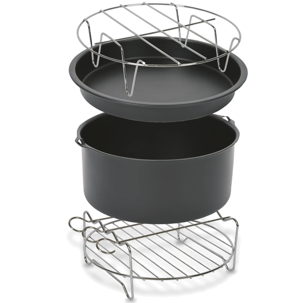 Compatível com: AL501810, AL201810, EZ905D20, EZ801D10 > acessórios2790NovoProduto disponível4 acessórios: forma de bolos, placa de pizza, grelhados com espetos e suporte em metal