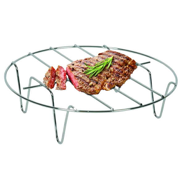 4 acessórios: forma de bolos, placa de pizza, grelhados com espetos e suporte em metal |